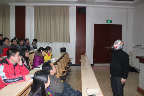 在消防安全演习结束后,药学院师生回到第四教室继续参加了安全知识讲座。